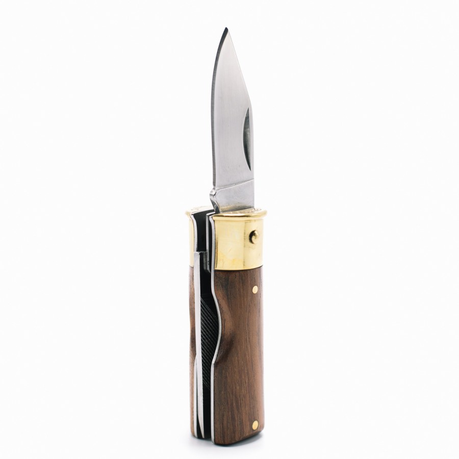 Caliber Gourmet shotgun shell knife w/brass and Mahogany wood handle.