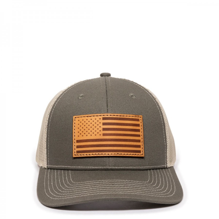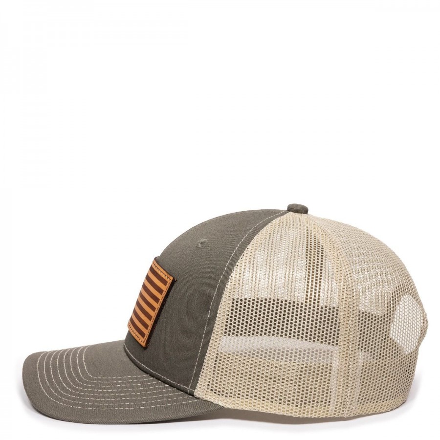 OC Leather Patch USA Flag 6 Pnl Snapback Olive/Tan