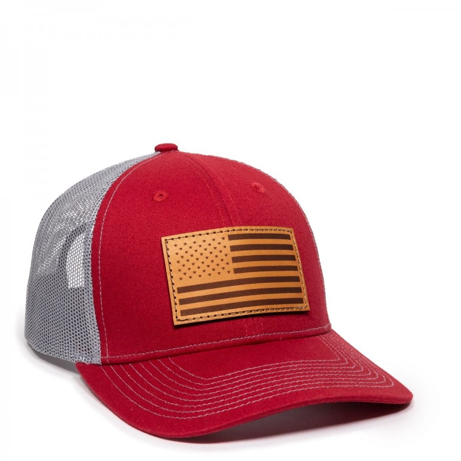 OC Leather Patch USA Flag 6 Pnl Snapback Cardinal/Granite