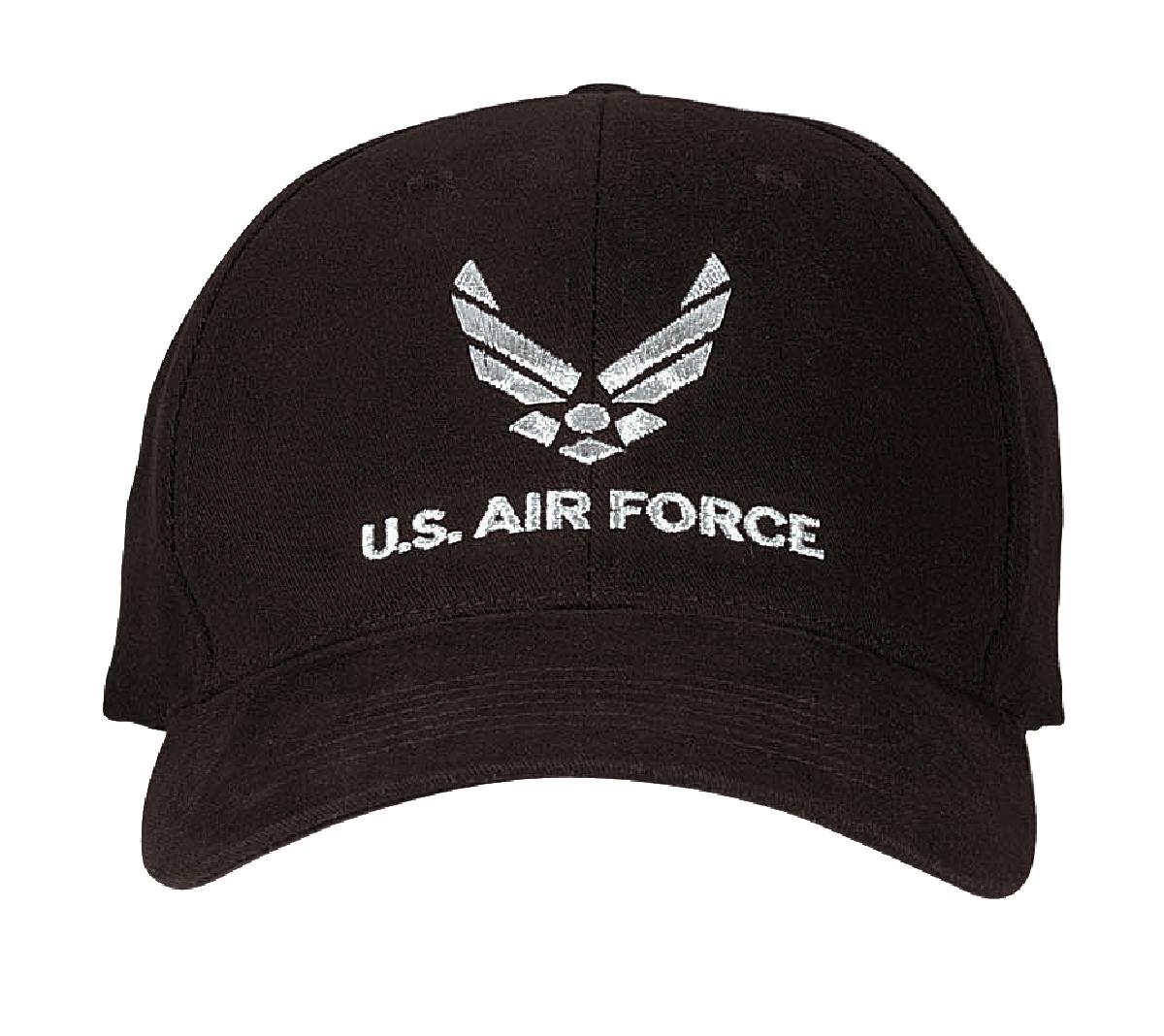 Rothco 9280 Black U.S. Air Force Supreme low profile insignia cap. Rothco U.S. Air Force Low Profile Cap is made from a durable 100% brushed cotton twill and features an embroidered Air Force insignia as well as the text 'U.S. Air Force' on the front panel. This military hat also features a hook and loop closure in back for adjustability and a padded sweatband for added comfort. This cap is officially licensed by the U.S. Air Force.