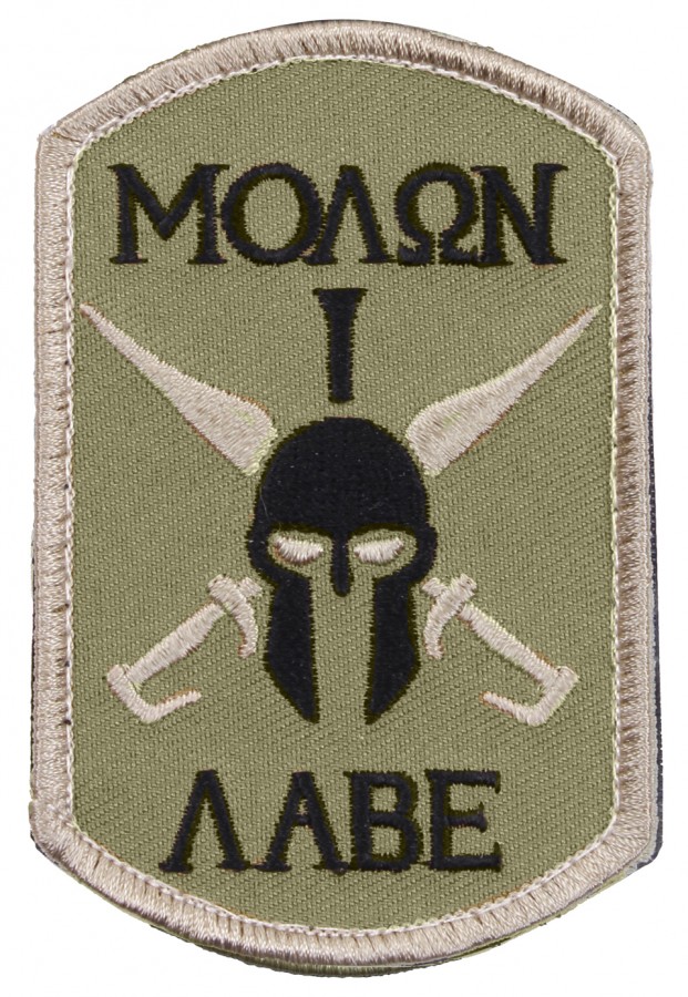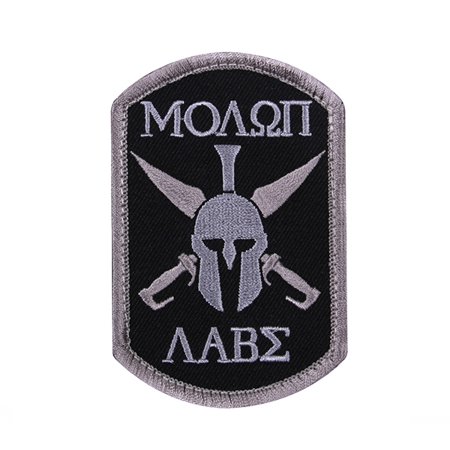 Rothco 1889 Black Molon Labe Patch features an embroidered Molon Labe text and helmet and sword image. ShoShow off your inner Spartan with the Rothco Molon Labe Patch; featuring an embroidered Molon Labe text and helmet and sword image. Molon labe is the classical expression of defiance meaning coming and take it. The nylon hook back allows the morale patch to easily attach to your favorite hat or tactical jacket.