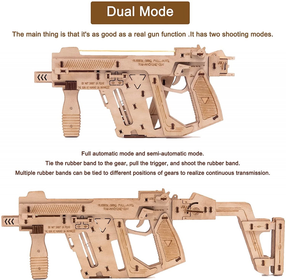 Cg Rubberband 9mm Machinegun Wooden Puzzle