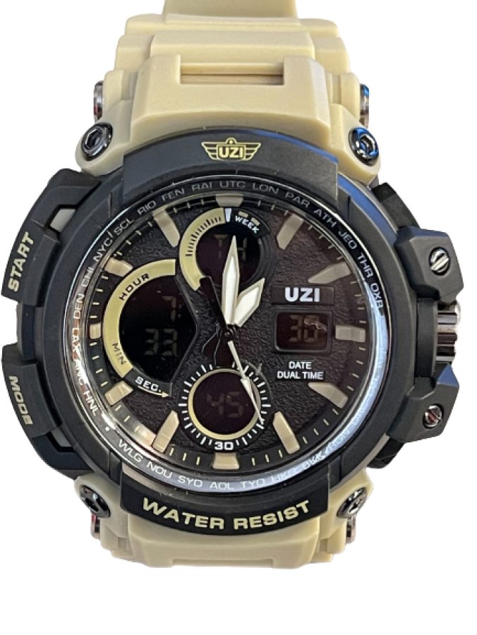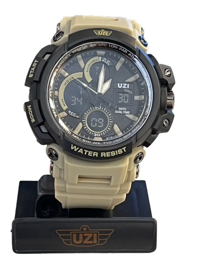 UZI Shock Digital Watch w/Rubberized Band - Khaki