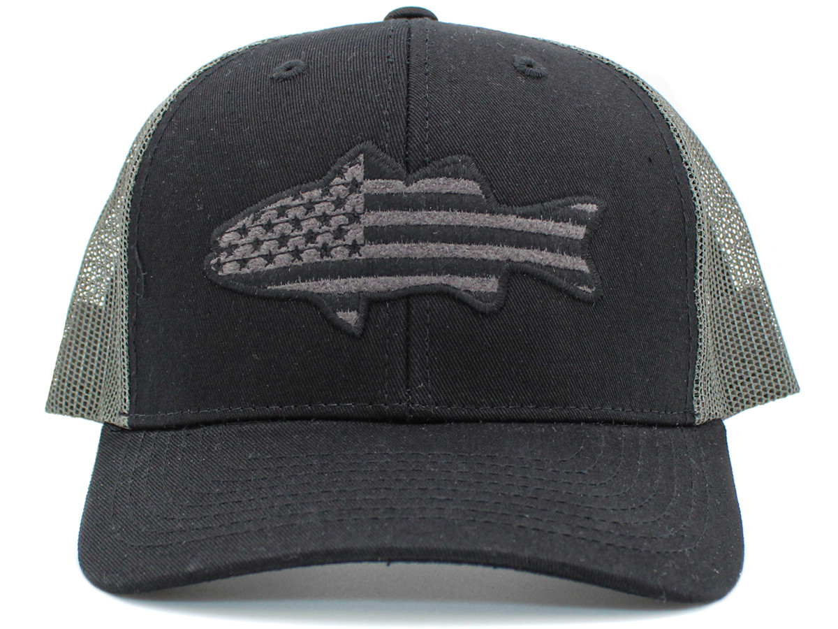 KB Fish USA Flag Embroidered Meshback Snapback Trucker Hat