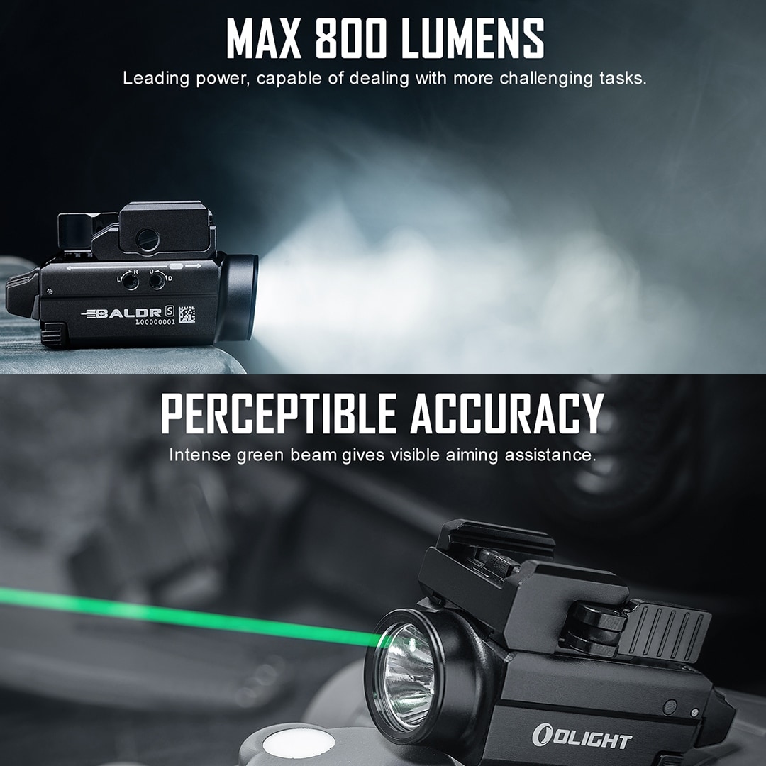Olight Baldr S Pistol Flashlight 800 Lumens with Green LaserThe Baldr S is one of the most powerful compact light/green beam combos on the market. Its white light output goes up to 800 lumens and is complemented by a low 100-lumen setting. The built-in lithium polymer battery is increased to 3.7V 380mAh, it takes about 80 minutes to fully charge, ensuring a max runtime of 140 minutes. This powerful, precise, compact, and adjustable WML is the perfect compact defense light source. Foolproof AccuracyA mode setting switch to select white light, green beam only, or both combined. Concealed SizeFits unobtrusively with compact barrels. No need to attach or detach it repeatedly. Compatible And ReliableTwo tightening screws are added to the slide rail mount, keeping the green beam right on the target even after intense recoil. Compatible with both Glock (insert already installed) and Picatinny sized rails (insert included in the package).Patented Slide Rail MountThe light can be slid back and forth on the sliding rail to the best position, which makes it even more compatible. Quick Install SystemWith the quick-install system, you can attach and release the light in seconds for instant activation. Simple Magnetic ChargingThe Charging cable snaps on instantly. Gets charging started right away. Quick As PossibleDual ambidextrous switches for smooth momentary-on or constant-on activation by either hand with ease. Upgraded PerformanceCombining both a highly visible green beam and 800 lumens of white light. The runtime is upgraded to 140 minutes. Adjustable RailSlide the rail adapter back and forth freely to fix the light in the desired position. Quick installation and removal within one second. Below Zero 12kN Heavy Duty Carabiner with Locking ClipThe Below Zero 12kN Heavy Duty Carabiner with Locking Clip (Orange) is a powerful and high-quality outdoor accessory. A compact tool made of top-grade aerospace aluminum 7075, this carabiner will get the job done for practically any application. Power and DurabilityLightweight at just over 1 ounce and palm-sized, the Below Zero 12kN Heavy Duty Carabiner can be taken anywhere yet carries strength far beyond its size. It's made of powerful aerospace aluminum 7075 and exudes 12kN or 2, 697 pounds of force. Despite carrying the weight of a black rhinoceros, this carabiner is extremely durable and rustproof. Versatile DesignThis carabiner is operable with one hand thanks to an easy-to-use screw locking mechanism and smooth, scratch-free screw action, as well as its compact size. The screw gate is manually operated for safety, preventing accidental opening of the gate. When open, the screw gate allows 0.6 inches of space to insert objects. Any ApplicationIdeal for multiple applications, the Below Zero 12kN Heavy Duty Carabiner is compatible with hammocks, swings, punching bags, dog leashes, portable water bottles, keychains and tools, backpacks or vehicles, including pickup trucks. Take it camping, hiking, fishing and more. You'll never want to be without this useful accessory! | Olight Baldr S Pistol Flashlight 800 Lumens with Green Laser and Carabiner Bundle in Black.