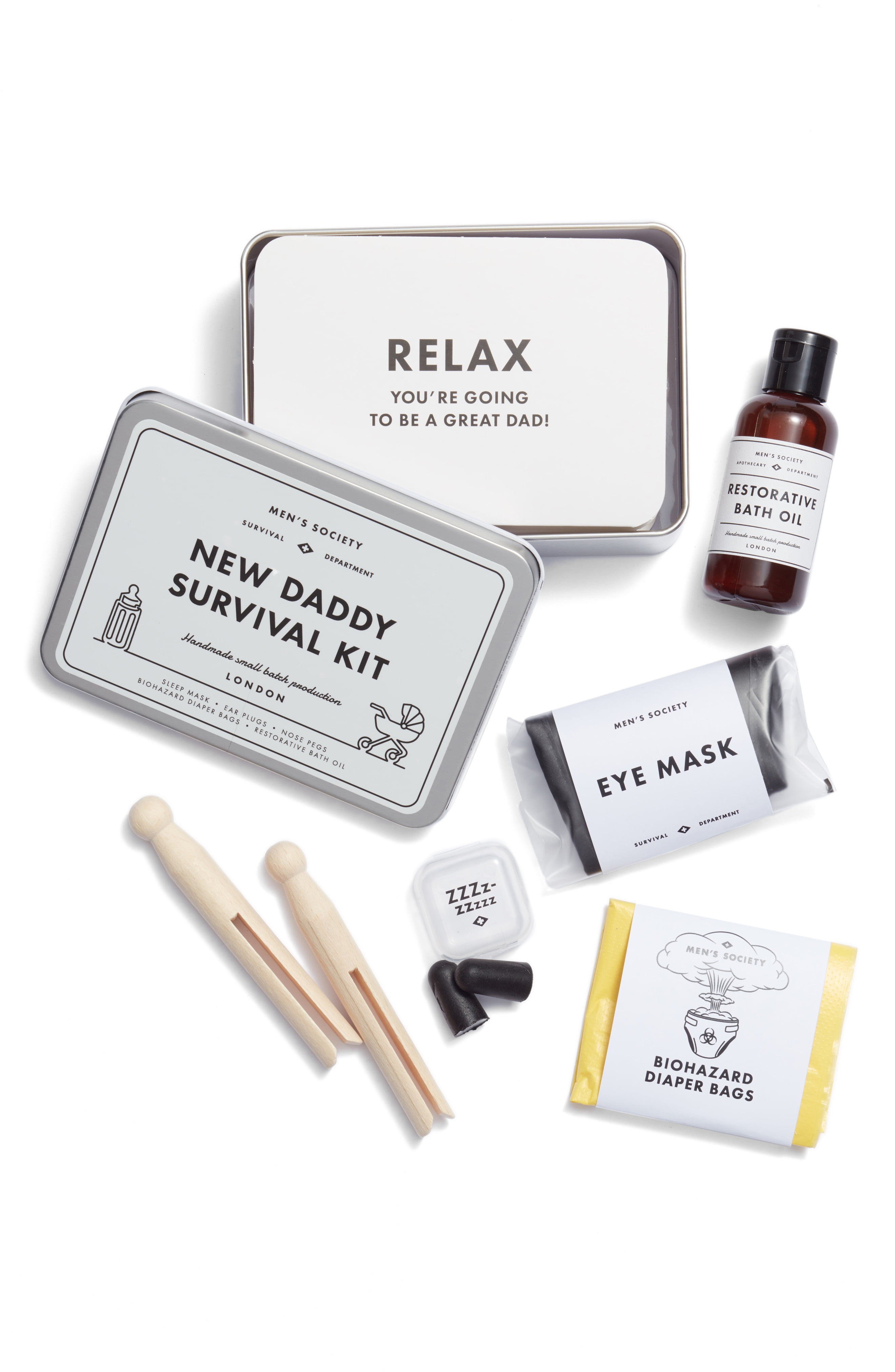 Treat a brand new Dad to the New Daddy Survival Kit from Men's Society. Housed in a compact and sleek metal tin, the little kit contains a selection of essential items that would be most welcome for a father of a newborn baby. The kit includes Men's Society’s luxurious Restorative Bath Oil that is made with Sweet Almond Oil and Sunflower Seed oil to moisturise, soften and revitalise the skin. Scented with calming lavender oil, a few drops in a bath will calm the mind and help induce a good night’s sleep. An eye mask and ear plugs will encourage those rare moments of sleep, while nose pegs and ‘biohazard’ nappy bags will help with the smellier aspects of fatherhood. Contains: 50ml Restorative Bath Oil, Elasticated Sleep Mask, 2 x Ear Plugs, Biohazard Diaper Bags, 2 x Wooden Nose Pegs Made in Britain Dimensions: H: 3.5cm x W: 10cm x D: 14cm.