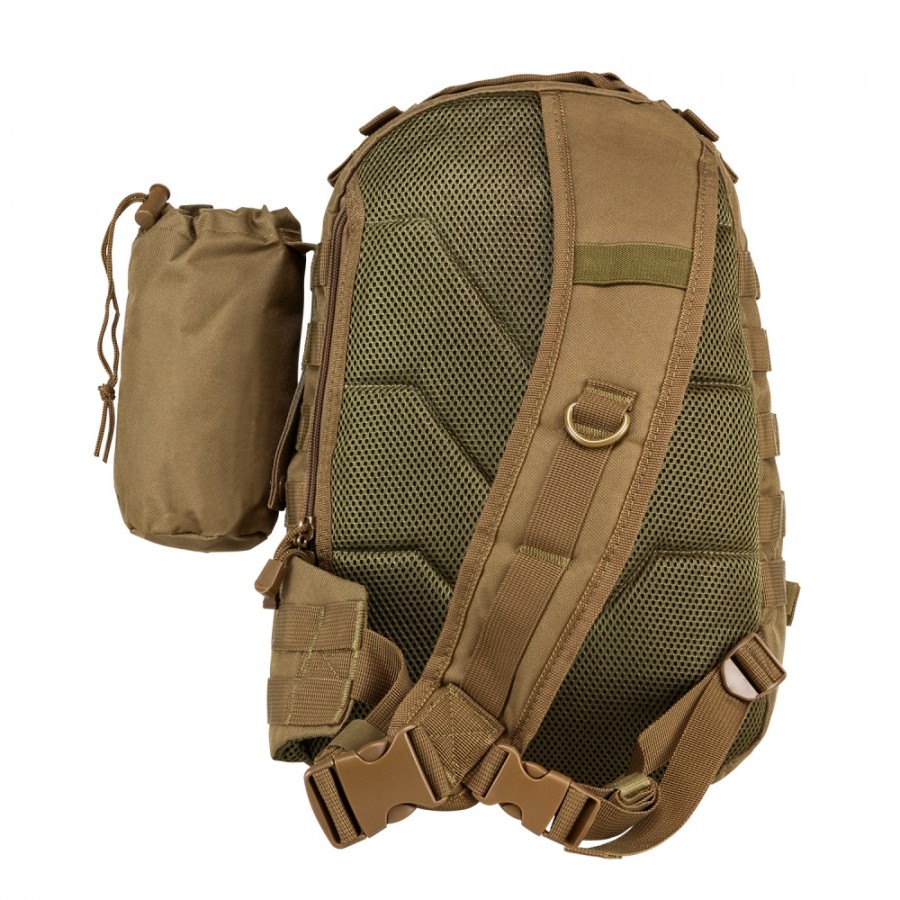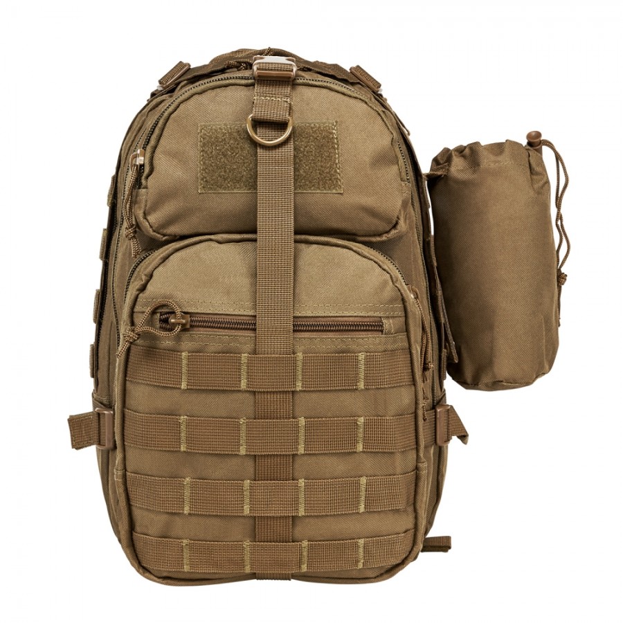 MOLLE compatible webbing on the front pockets and the bottom of the back pack.